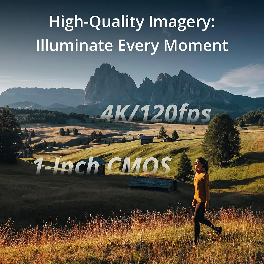 Compact, Gimbal-Stabilised Camera with 1-Inch CMOS Sensor for High-Quality 4K Video and Low-Light Performance